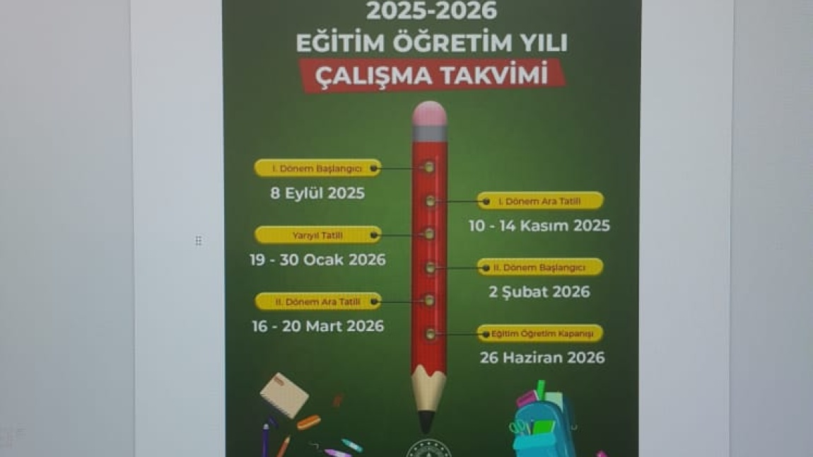 2025/2026 Eğitim Öğretim Yılı Çalışma Takvimi