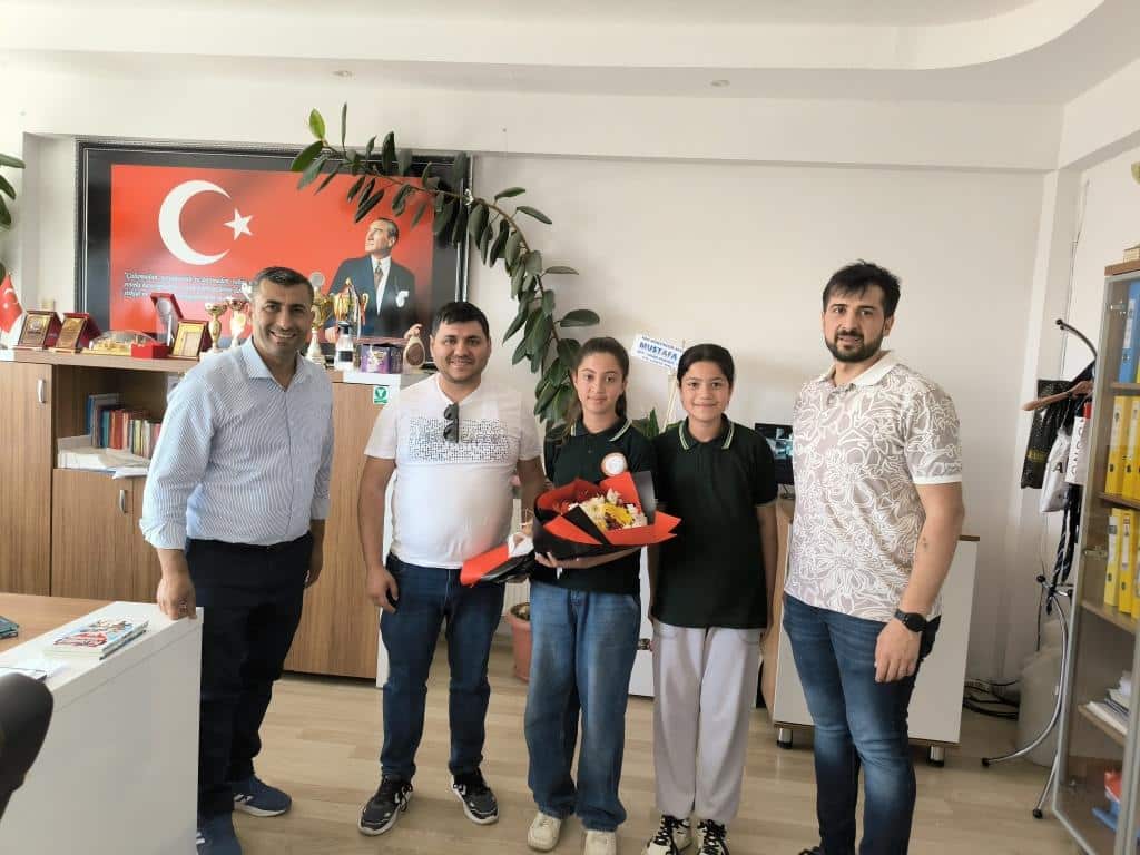 Okul Yönetimimiz Sayın Yaşar BAYRAKTAR'a okulumuz ziyaretleri ve bu güzel söyleşi için kendilerine çiçek takdim ettiler.
